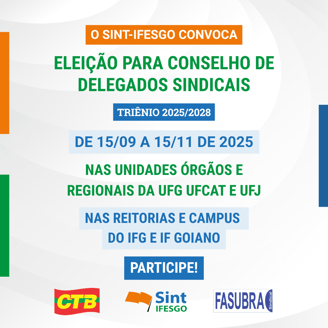 O SINT-IFESgo convoca eleição para conselho de delegados e delegadas sindicais para o triênio 2025-2028