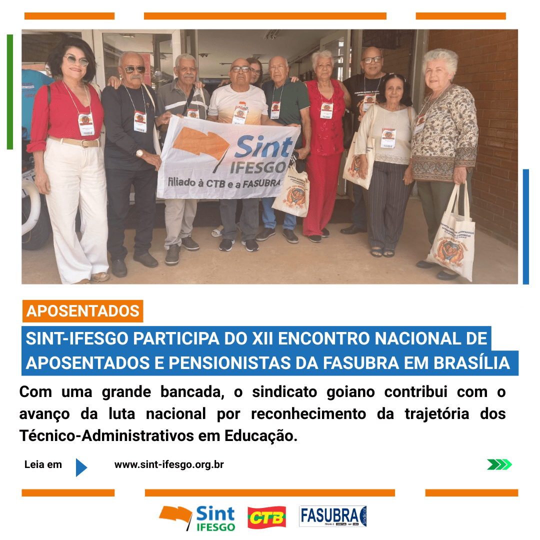 SINT-IFESgo participa do XII Encontro Nacional de Aposentados e Pensionistas da FASUBRA Sindical em Brasília