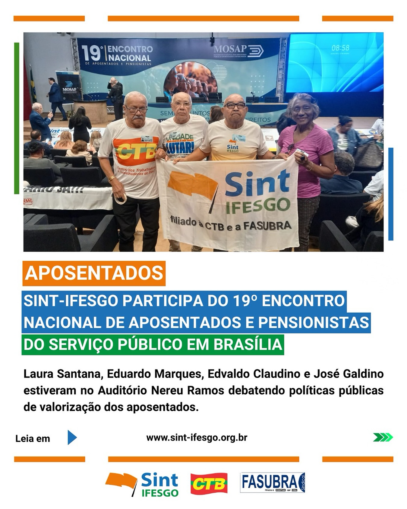 SINT-IFESGO PARTICIPA DO 19º ENCONTRO NACIONAL DE APOSENTADOS E PENSIONISTAS DO SERVIÇO PÚBLICO EM BRASÍLIA