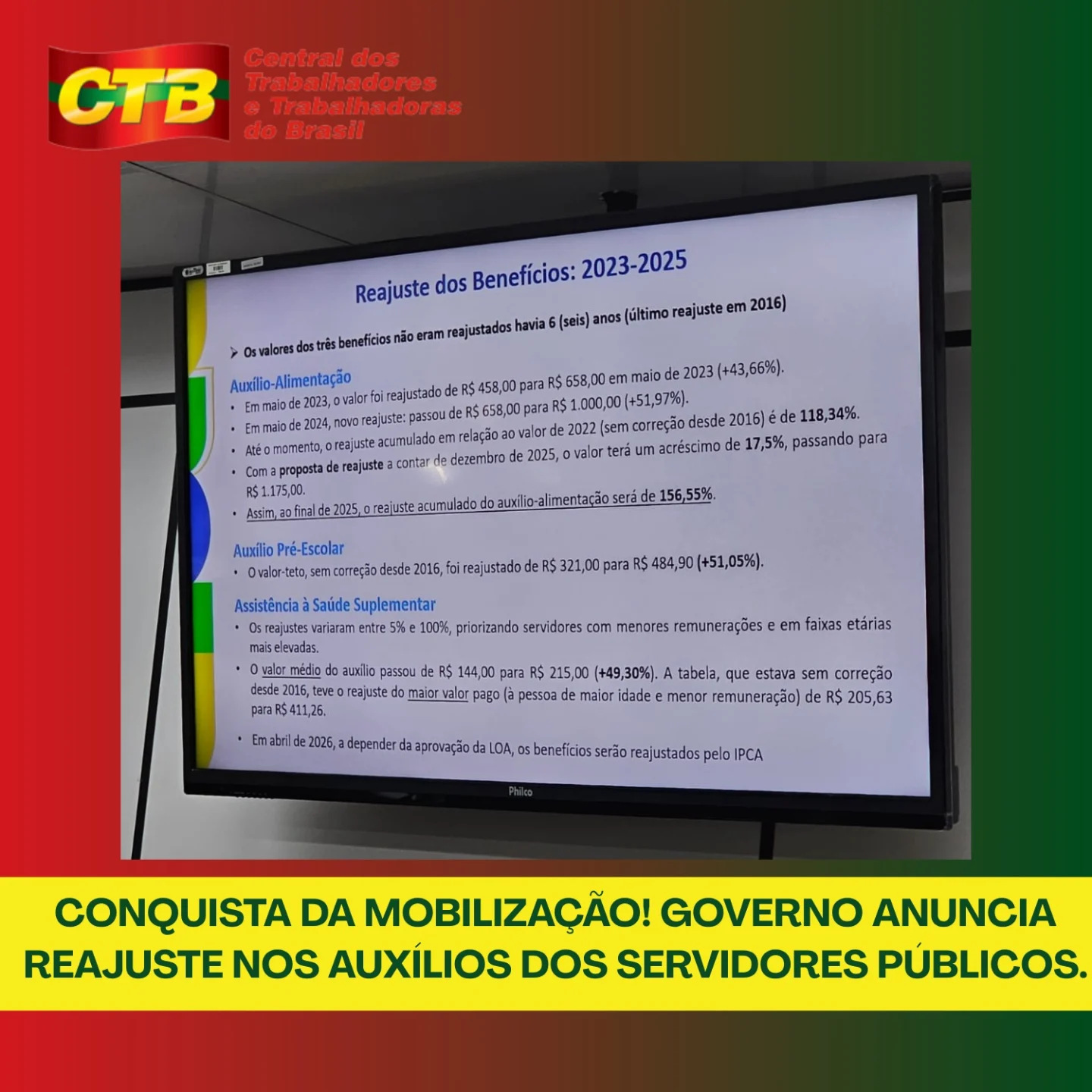 Governo anuncia reajuste nos auxílios dos servidores públicos e apresenta propostas para negociação coletiva anual e outras medidas que podem fortalecer o movimento sindical!